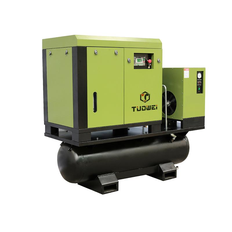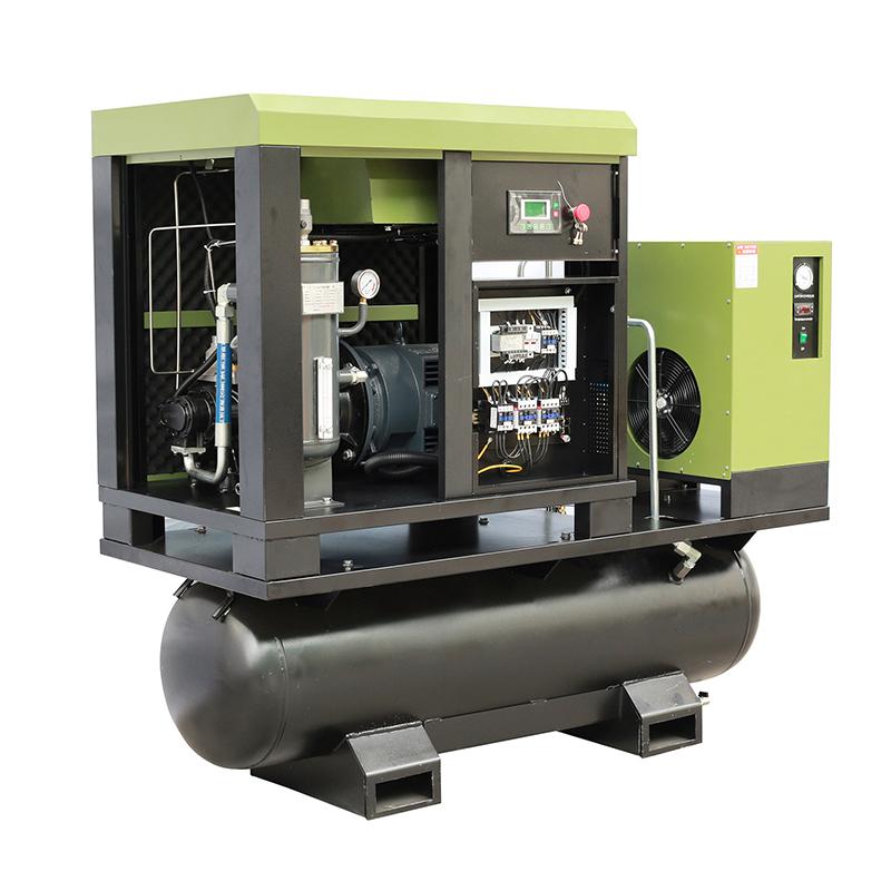 Комбинированные винтовые воздушные компрессор объединяет винтовые компрессоры, сушилки для листовых сушки, точные фильтры и резервуары для хранения воздуха, что позволяет пользователям для пользователей устанавливать, использовать и двигаться. После того, как воздух проходит через интегрированную систему, качество воздуха будет значительно улучшено, чтобы удовлетворить требования к процессу различных компаний. Он имеет характеристики красивого внешнего вида, стабильной производительности и экономика.